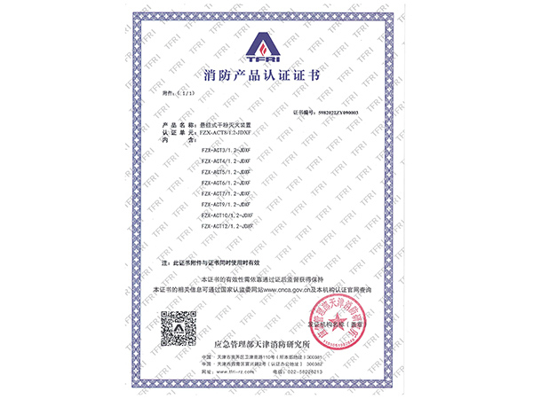 FZX-ACT 系列(貯壓)懸掛式干粉滅火裝置具有“響應(yīng)快、早期報警、滅火快”的特點(內(nèi)部充裝干粉為ABC超細干粉)。具有對保護物無腐蝕,對人體皮膚和呼吸道無刺激,滅火快,效率高。